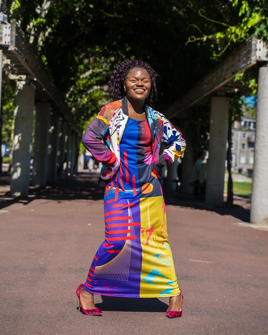 Green and Blue Multi Long Jersey Dress