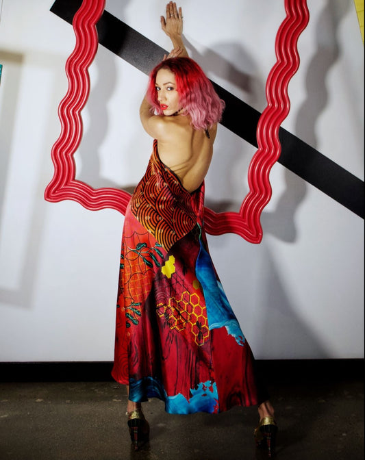 Red Graphic Halter Maxi Dress