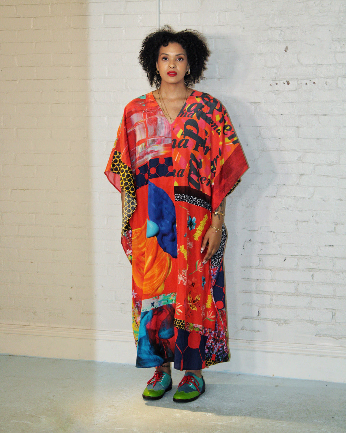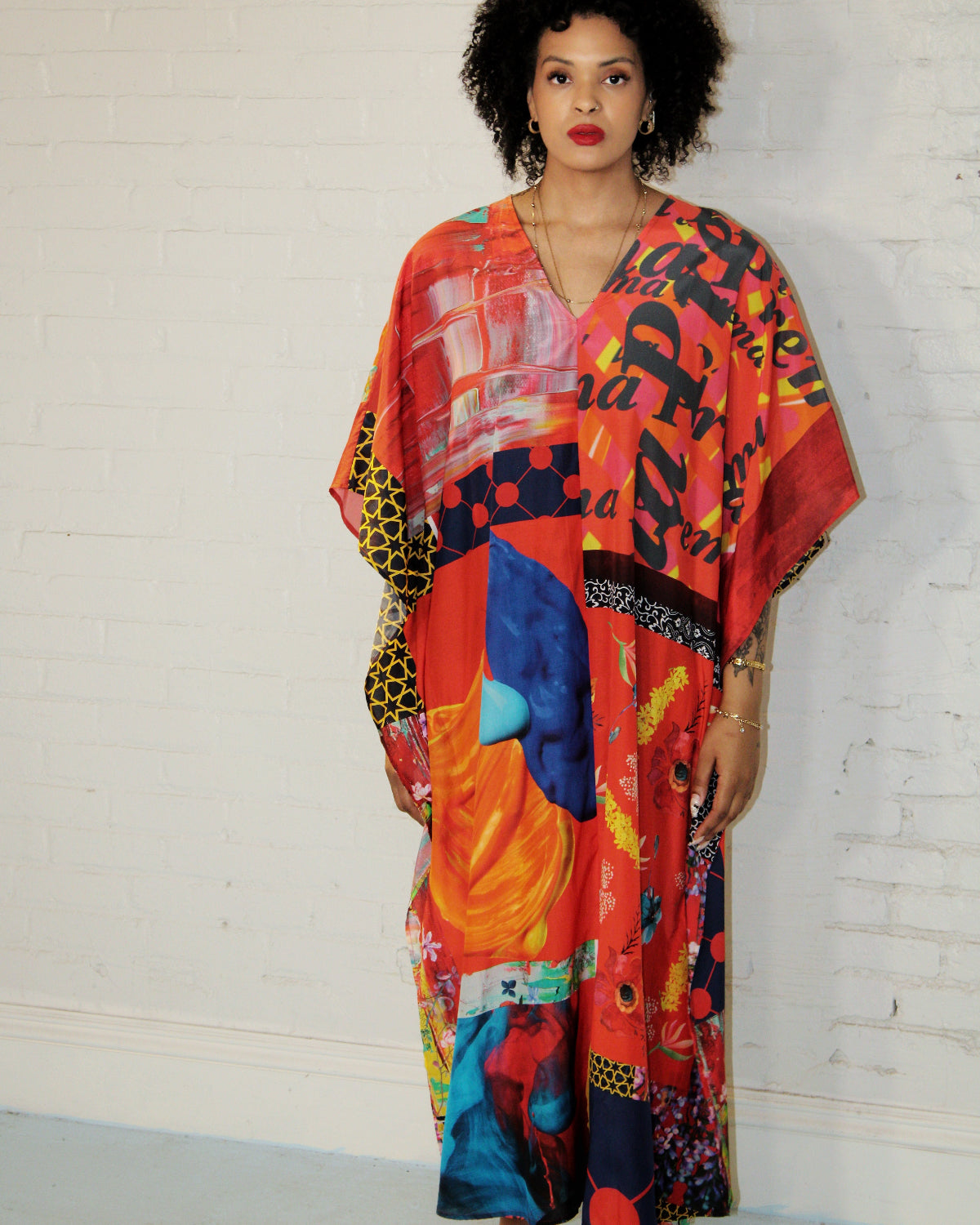 Breezy, elegant, and effortlessly refined - this silk cotton caftan is the epitome of colorful boldness and laid-back luxury combined. With its relaxed silhouette, flowing sleeves, and subtle sheen, this piece seamlessly transitions from lounging at home to your summer getaways or fun evenings out. Whether worn as a chic cover-up or styled as a statement dress, this caftan is an effortless way to level up your style while being cool and comfortable in the warmer weather!