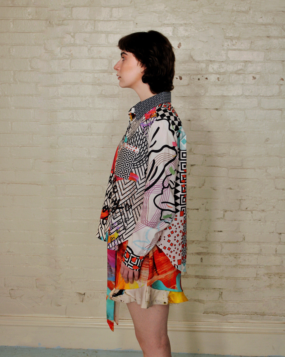 The vibrant print and colors bring fresh energy to this everyday essential, while classic tailoring keeps the look effortless polished. Whether styled buttoned-up or worn open over a tank, this shirt adds an artistic pop of color and creativity to any outfit.