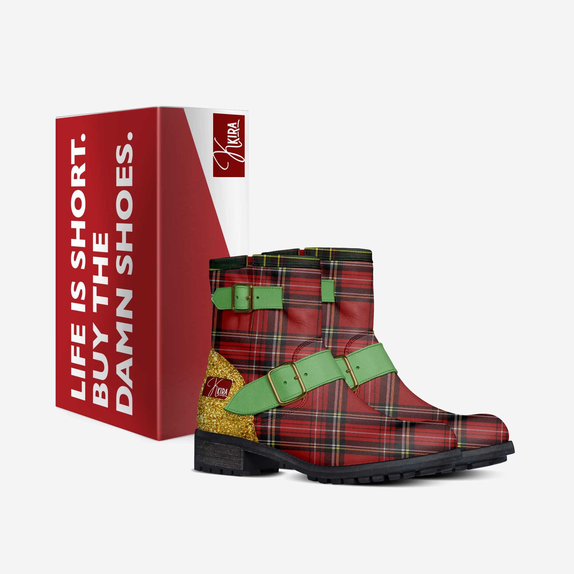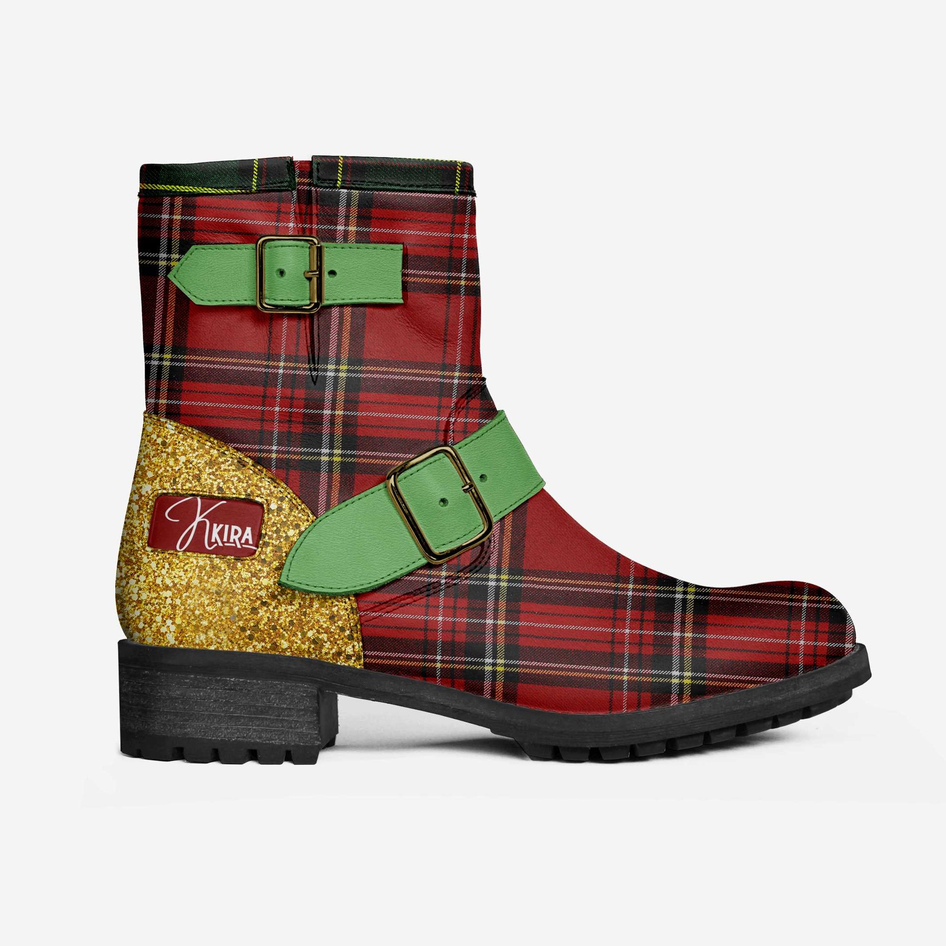 The Kristine's are a Low Heel Ankle Boot with a dented sole and a 5 cm (2 inches) heel height. This traditional design celebrates the season with a beautiful red plaid, a bit of glitter, and green buckle details. It is perfect for the adventurous soul embracing the season with joy and celebration!