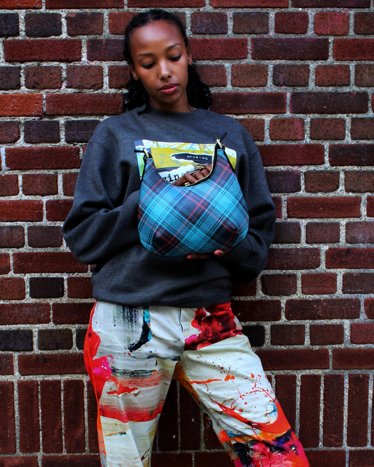 Meet your new statement accessory — a compact leather shoulder bag that blends classic charm with bold, modern edge. Crafted in a vibrant blue-and-red tartan plaid on one side and purple-and-red tartan plaid on the other, this purse instantly elevates any outfit with its mix of nostalgia and street-style attitude.