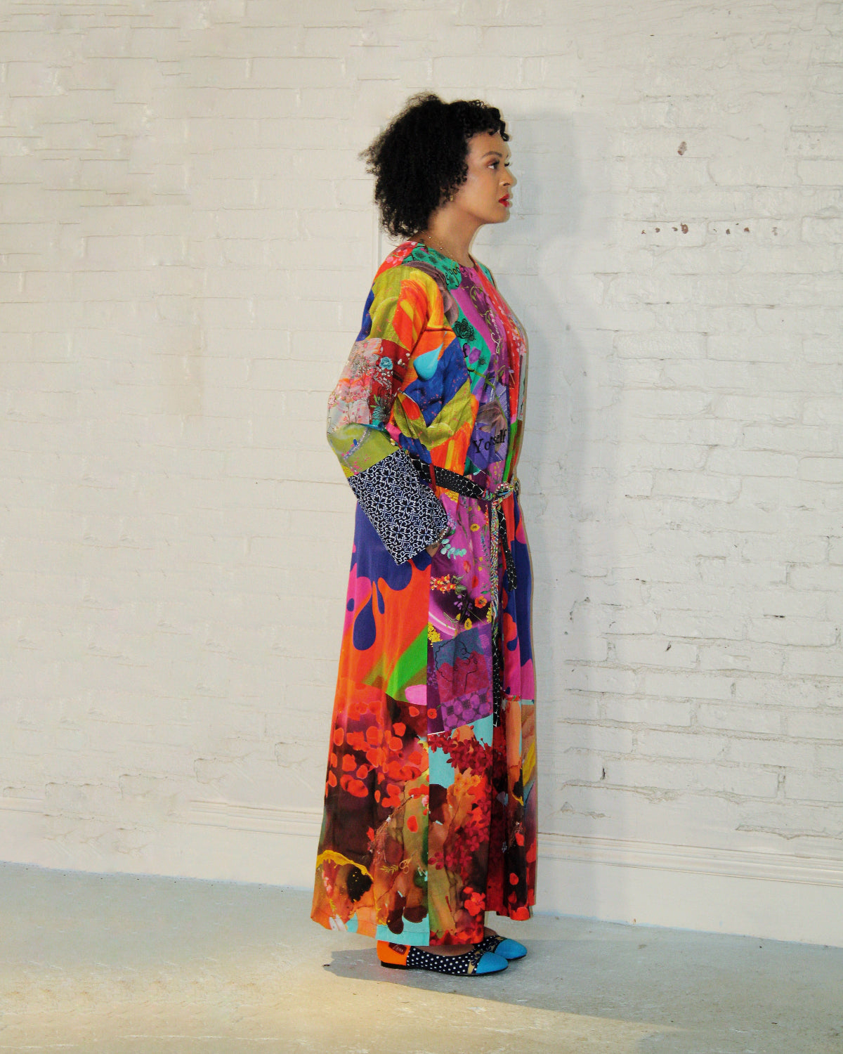 Inspired by classic kimono lines, this dress features vibrant colors and designs while providing both structure and fluidity. Equally suited for everyday elegance or dressed-up occasions, it's a timeless piece with joyful ease.
