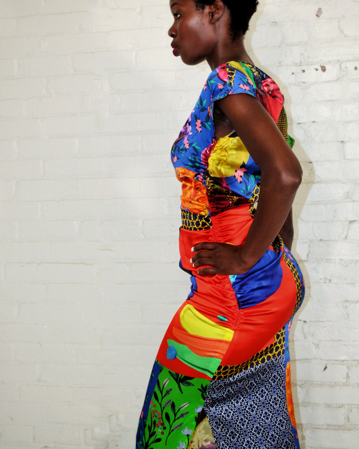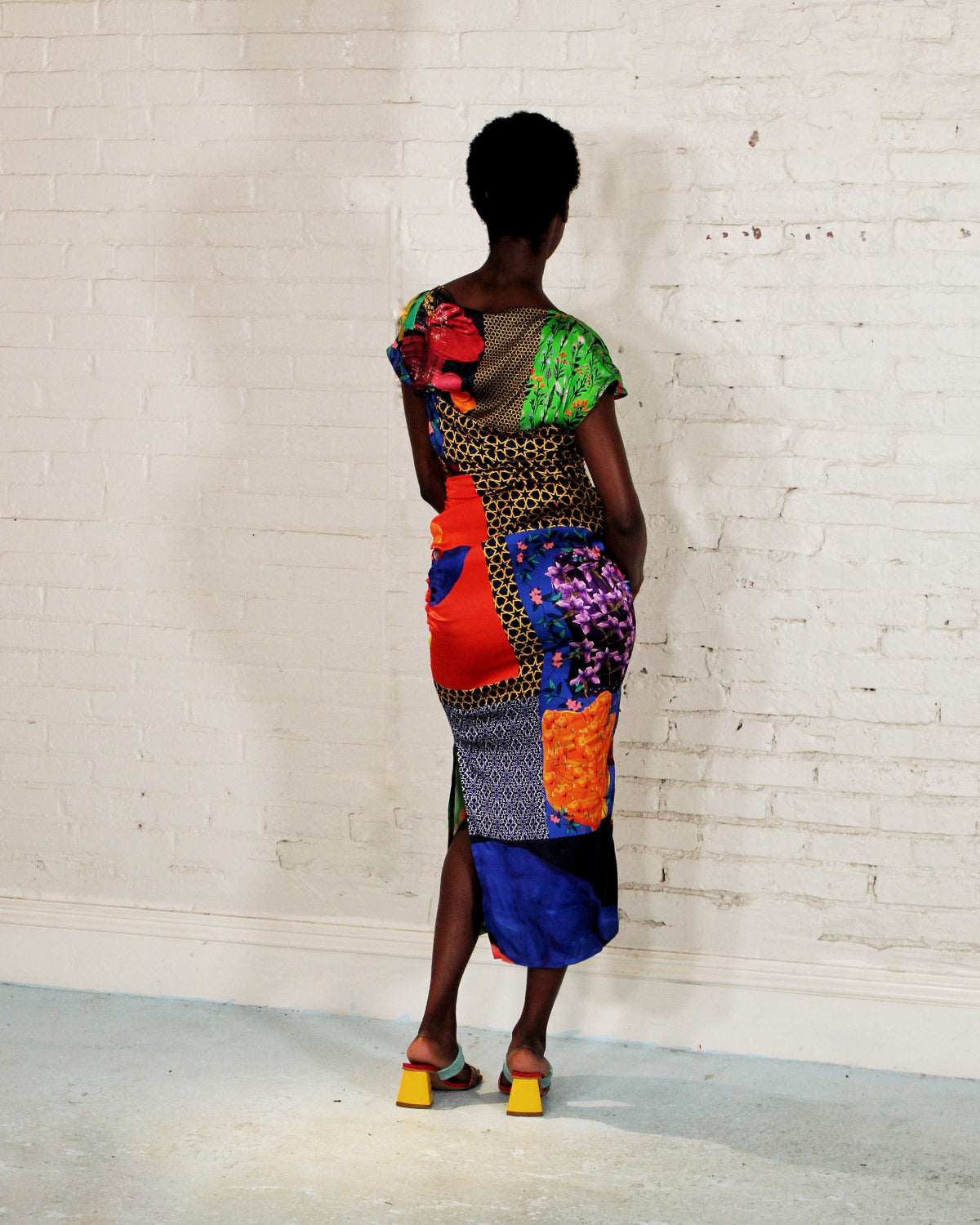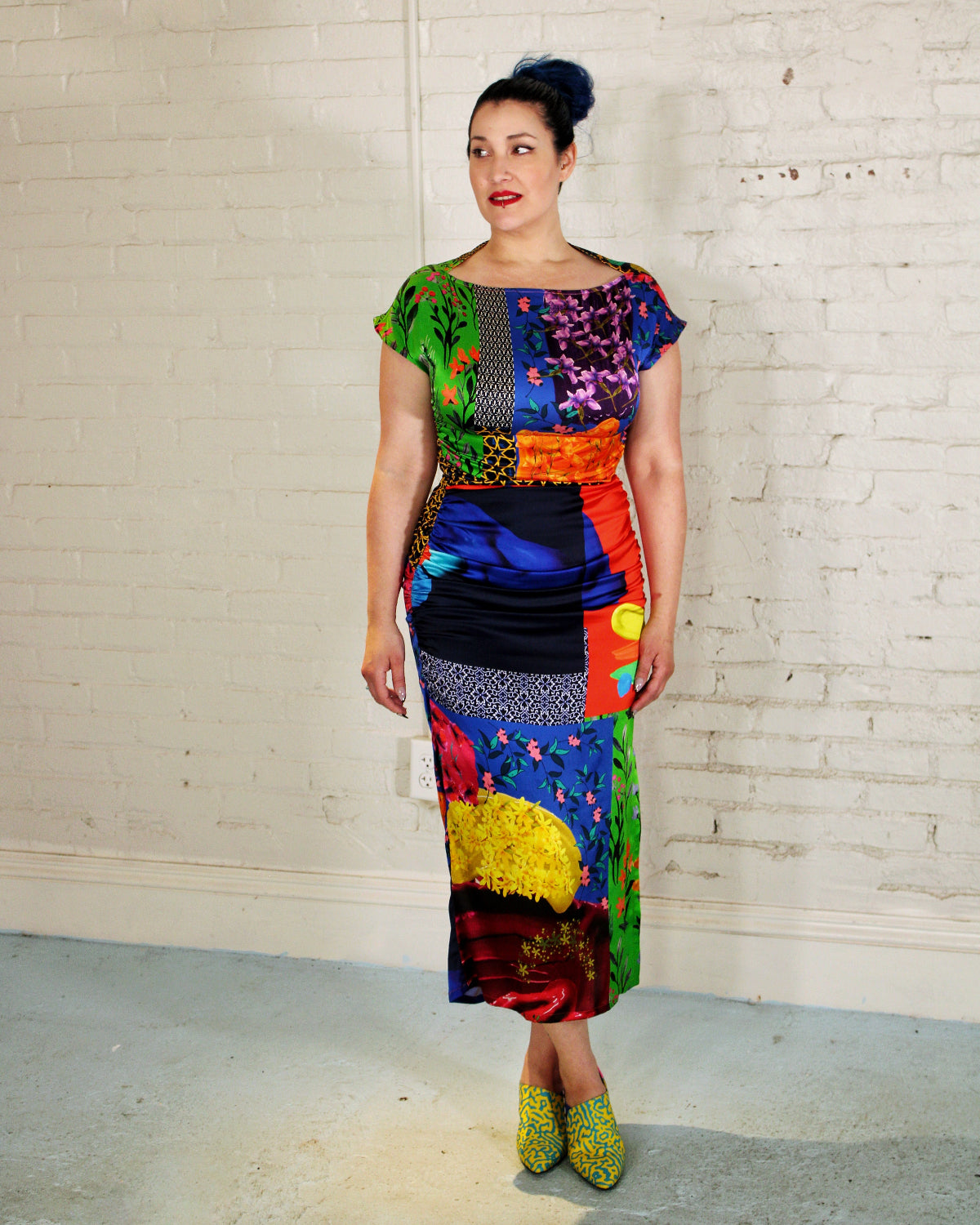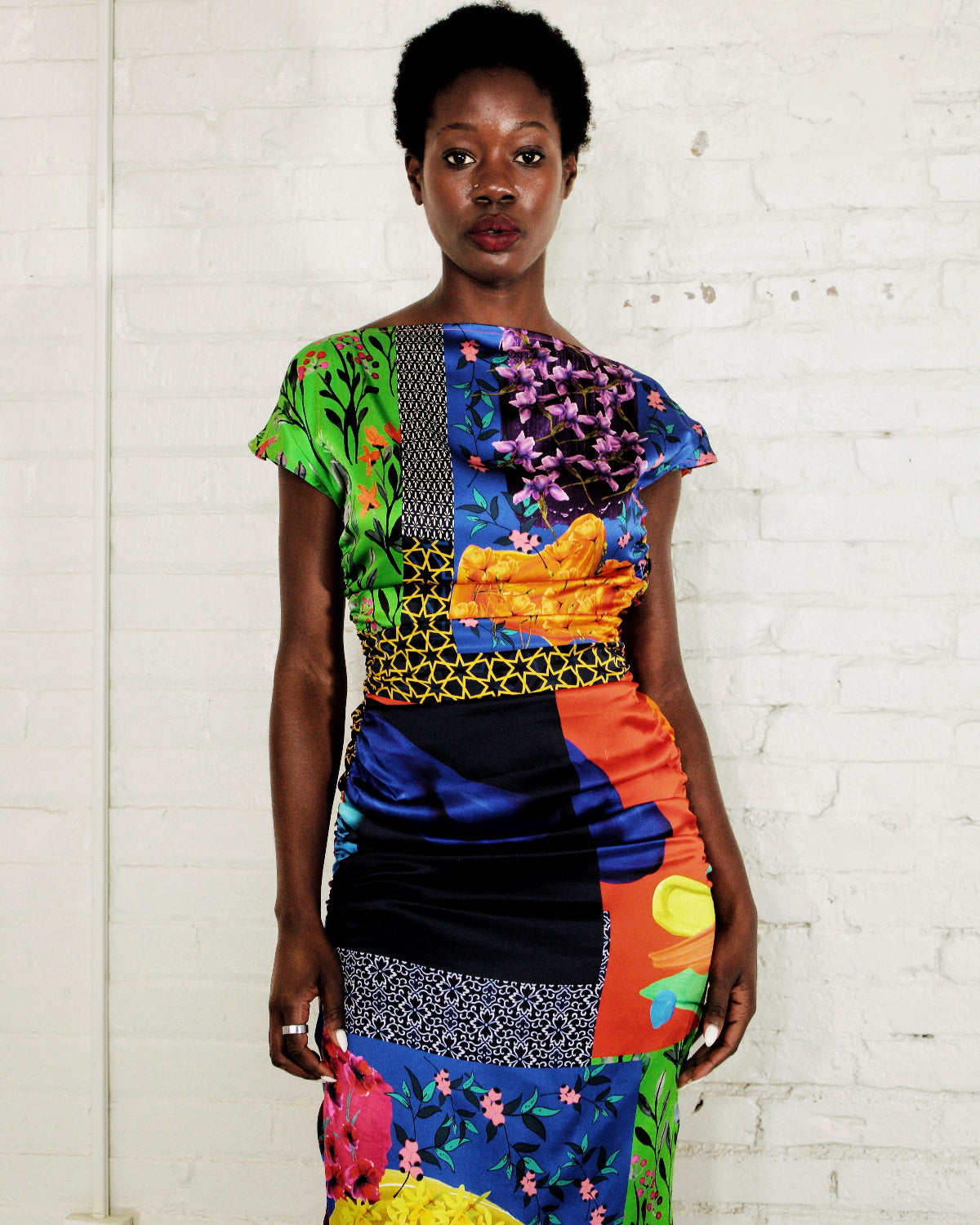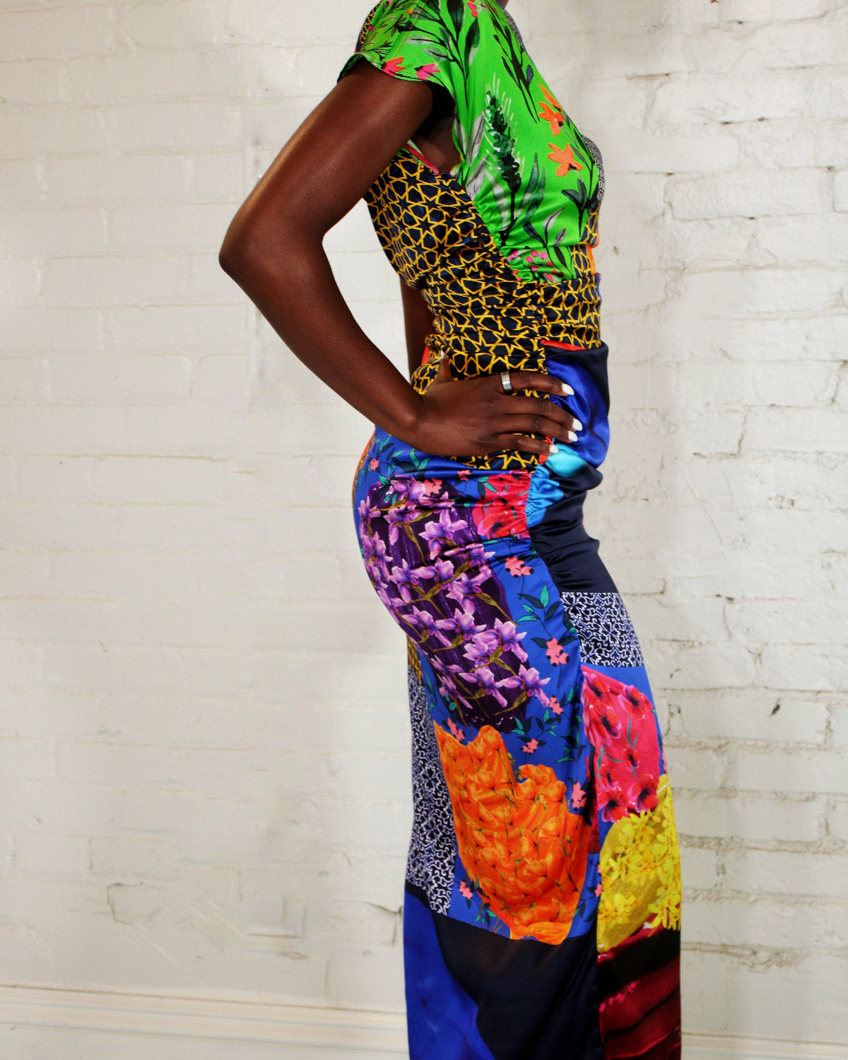 Sleek, striking, and effortlessly refined - this dress adds a touch of classic elegance, beautifully framing the collarbone, while the bold and colorful design brings modern energy and expressive charm. Whether worn for a special occasion or a vibrant night out, this dress is made to stand out — and flatter from every angle.
