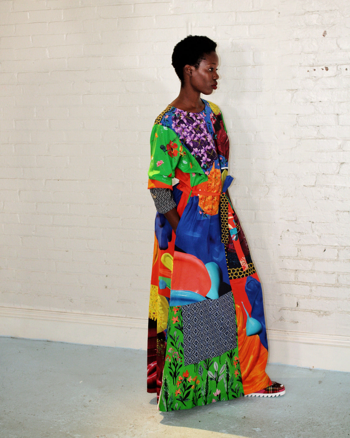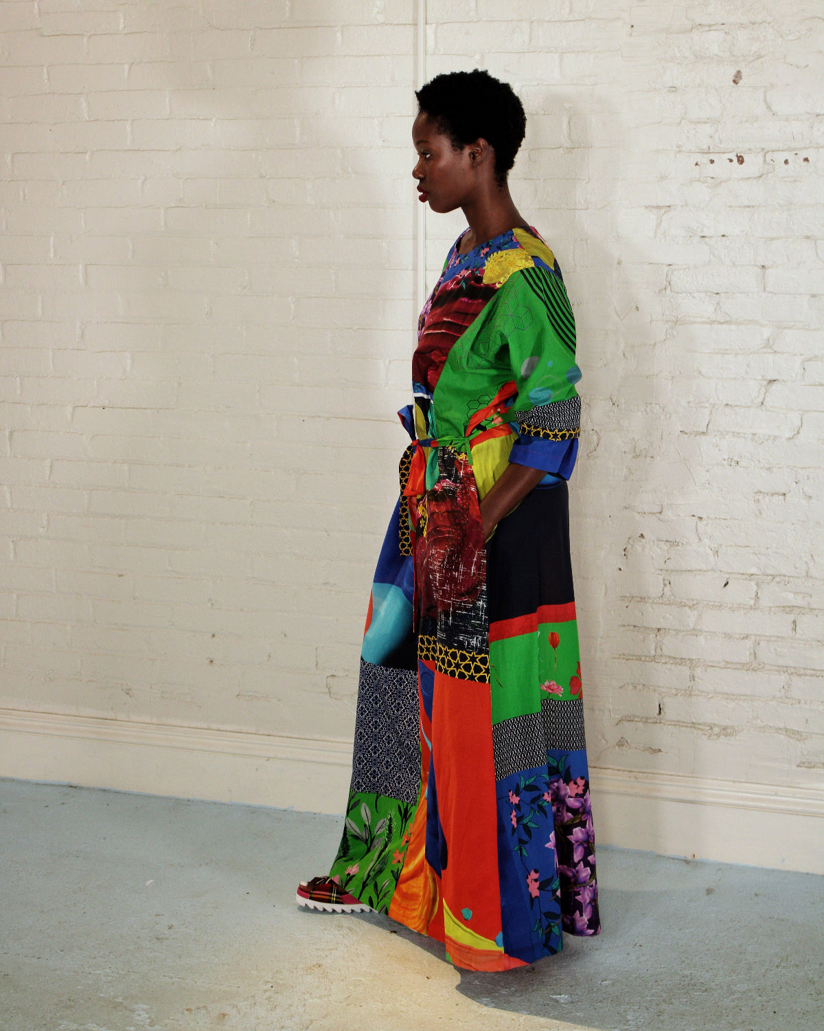Inspired by classic kimono lines, this dress features vibrant colors and designs while providing both structure and fluidity. Equally suited for everyday elegance or dressed-up occasions, it's a timeless piece with joyful ease.
